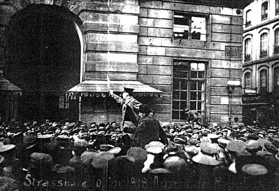 En la foto, la proclamación en Estrasburgo de la República de los consejos o soviets de Alsacia (9-22 de noviembre de 1918).