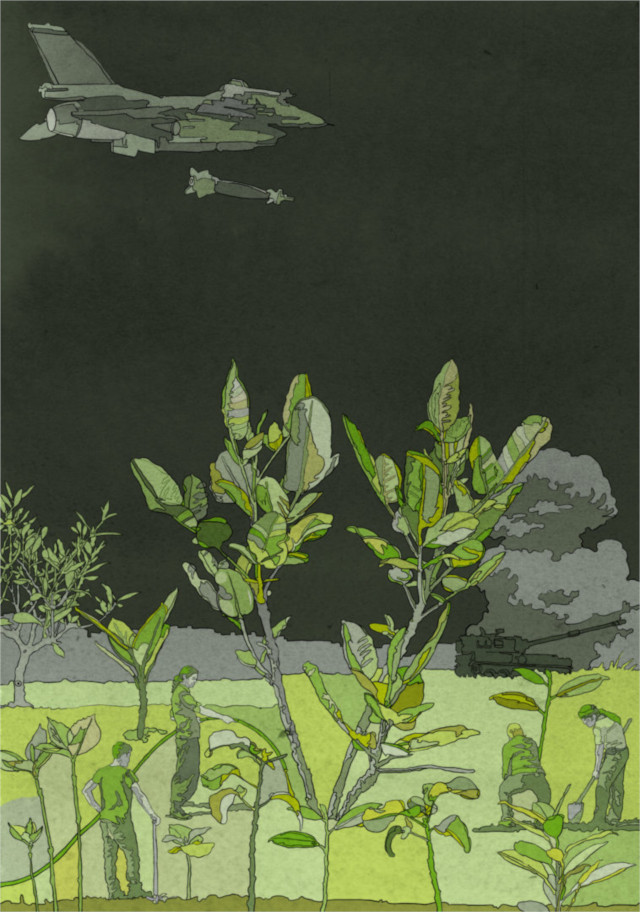 Uno de los proyectos en los que nos hemos enfocado desde la Comuna es la ecología, y por eso hemos lanzado la campaña ‘Make Rojava Green Again’ (Hagámos Rojava Verde de Nuevo). Rojava se enfrenta a graves problemas climáticos y ambientales, por eso decidimos poner nuestro foco en temas relacionados con la ecología social. Además de construir la academia internacionalista con un perspectiva ecológica, hemos iniciado un proyecto de cooperativa de árboles para colaborar en la reforestación de Rojava. Empezamos a preparar la campaña a finales de 2017 para hacerla pública a finales de enero, pero justo entonces Turquía inició la invasión de Afrin.